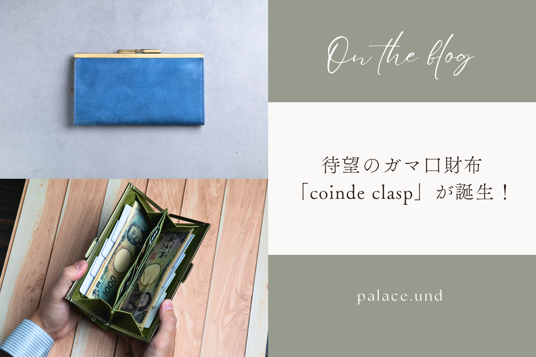 じつは palace.und、 この春、新しい仲間が加わります。 その名も coinde clasp(コインデ クラスプ)。 お客様からずっと多かった 「ガマ口タイプのお財布、作らないんですか?」 という声。 ようやくそのリクエストを、 palace.und らしいかたちで実現できました。 ■ “clasp”という名前に込めた意味 Clasp(クラスプ)は、名詞ではネックレスやバッグの「留め金」「金具」。 そして動詞では、人や物を「しっかり握る」「抱きしめる」という意味を持つ言葉です。 お金も、使い心地も、安心感も。ぎゅっと“つかめる”財布でありたい。 そんな想いから、この名前をつけました。 ■ ガマ口なのに、驚くほど使いやすい理由 coinde clasp の一番の特徴は、 “浮き足ガマ口”ならではの開口の広さ。 「浮き足ガマ口」とは、口金の左右に布を差し込む溝がなく、上部だけで固定するタイプのガマ口。ワンタッチでパカッと大きく開き、 中身が一望できる設計です。 ✔ レジ前でも中を探さない✔ 小銭も紙幣も取り出しやすい✔ パチンと閉まる安心感と心地よさ...